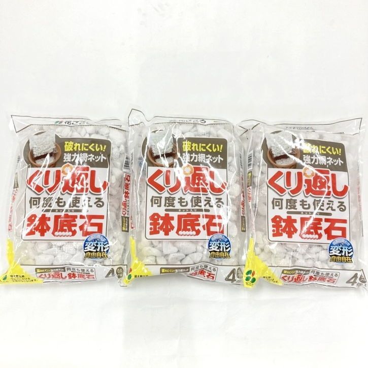丈夫なアミ袋入りで、水洗いして何度もでも使えるエコで経済的な鉢底石です。