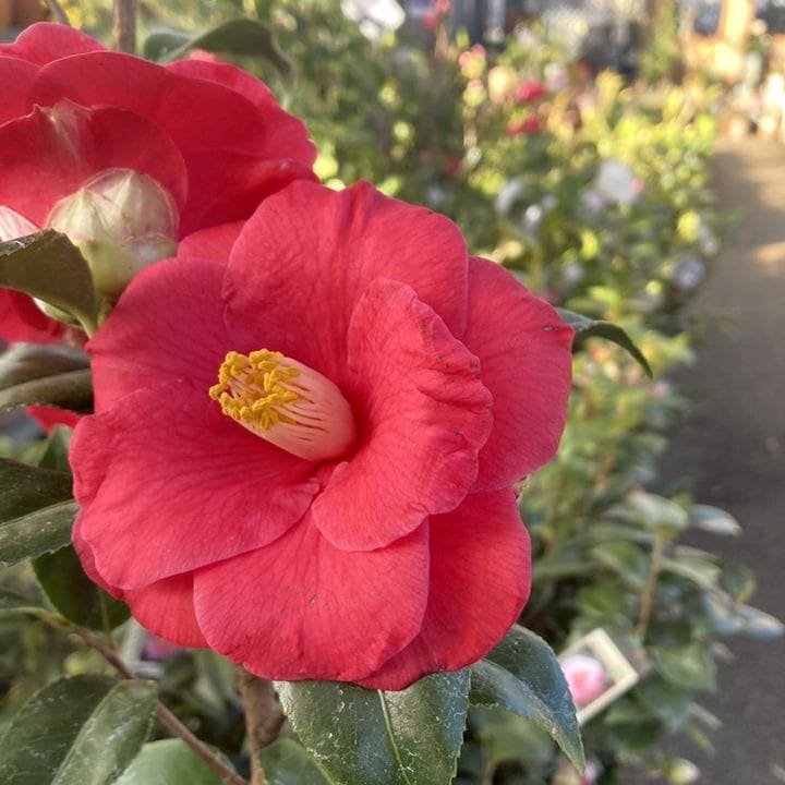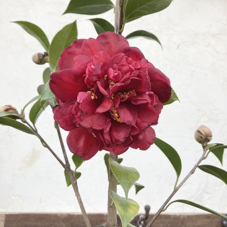 ニュージーランド原産の、希少な洋種椿。濃赤で八重咲き~牡丹咲きの豪華な花をつけます。 -