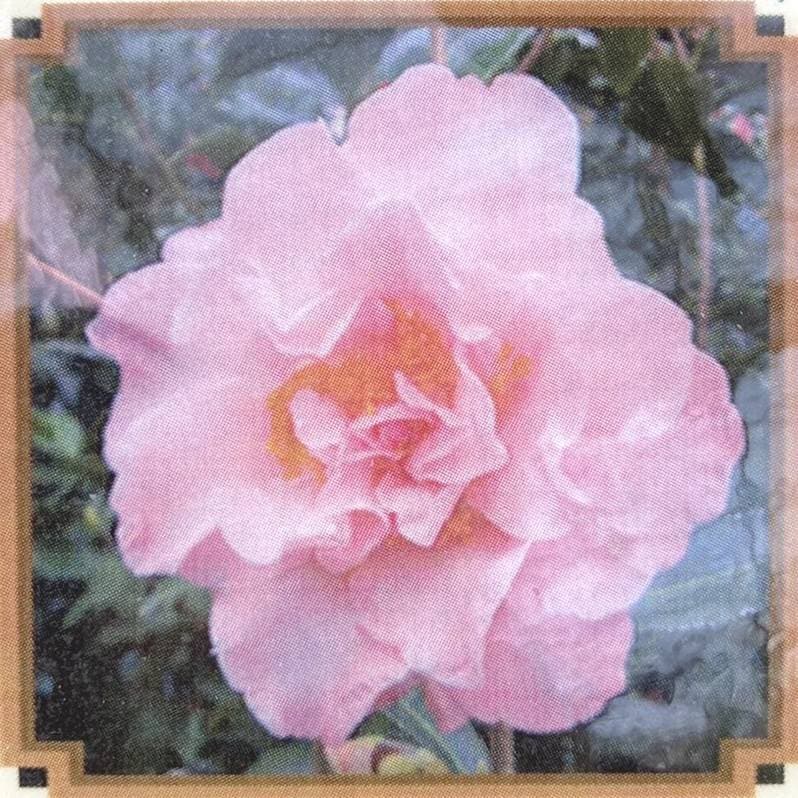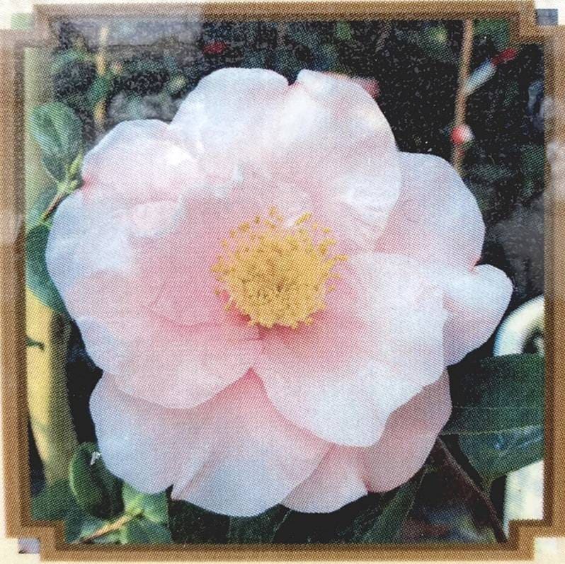 [ツバキ|サウスシーズ]極淡桃色の半二重咲~牡丹咲き。ニュージーランドのLes Juryが作出した品種。
