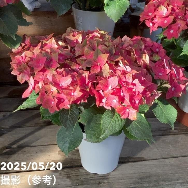 深い赤色が印象的で、大きなてまり状の花を咲かせます。