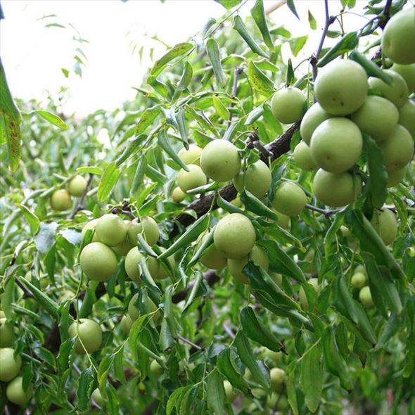 ナツメは初夏になってようやく芽を出すことから「夏芽」と呼ばれるほど、芽吹きの時期が遅い植物です。芽と同様に根の生育もゆっくりで、畑から掘り上げる際の根切れや輸入時の根洗いによって根量が減るため、お届け時期によっては根が少ない場合がございます。
