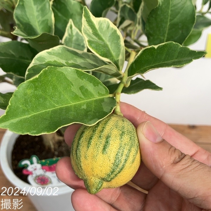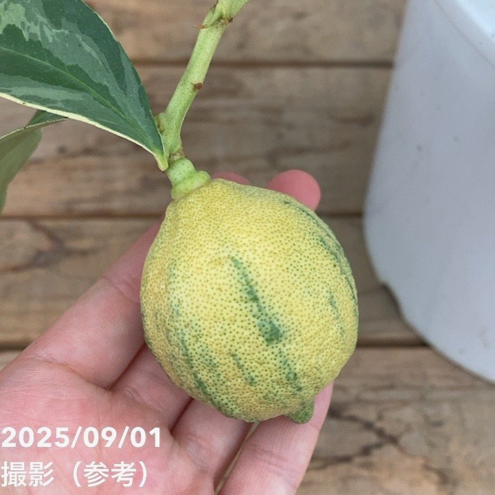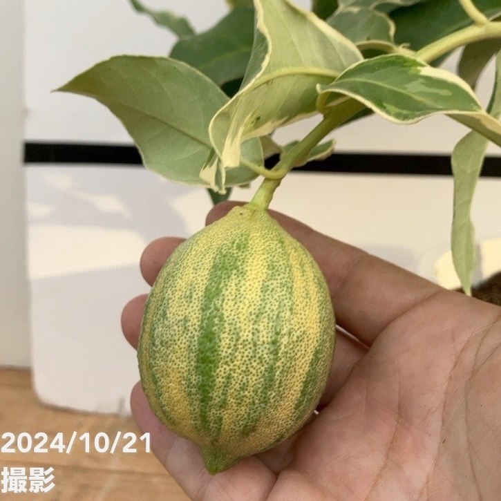 実の斑も黄色のため実が若いうちは目立ちますが、熟してしまうと緑の部分も黄色に変わってしまい、一見普通のレモンの様になってしまいます。