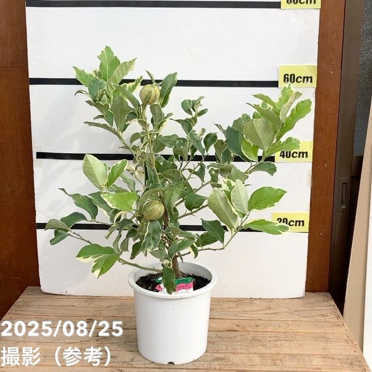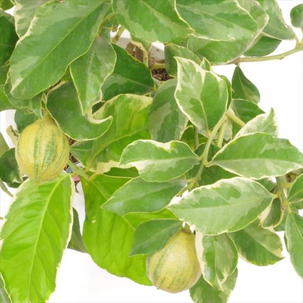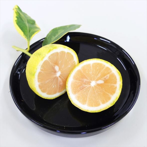 葉にも実にも黄色い斑が入るとても珍しくて美しい柑橘です。もともとは、レモンの枝変わりから誕生した品種だと言われています。