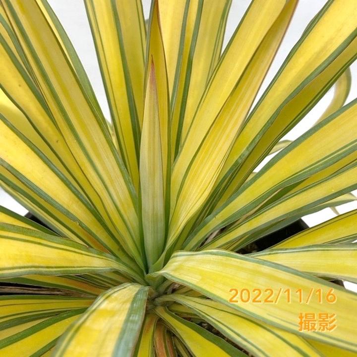 明るい黄色にグリーンの縁取りの入った葉のコントラストが美しい品種です。