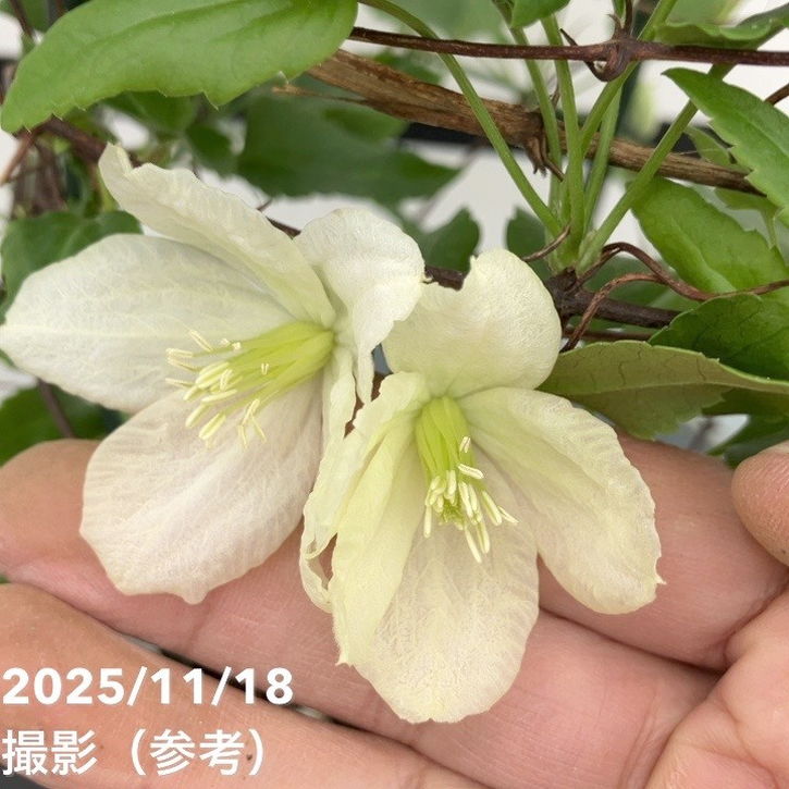 剪定:古枝咲きのため、弱剪定にとどめます。伸びすぎた場合は、2月から3月ごろまでに1/2ぐらいまで切り戻しておくと、その後新たに伸びたつるにも花がつきます。