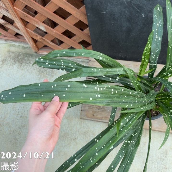 鮮やかな緑の葉に、特徴的な斑が入り、観賞価値が高いハランです。