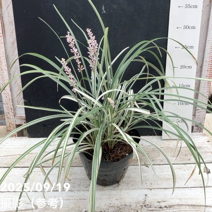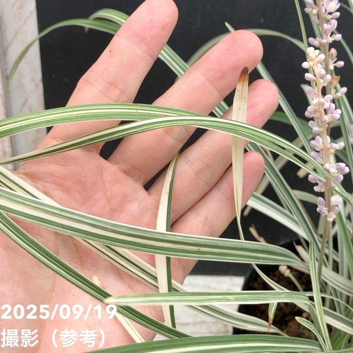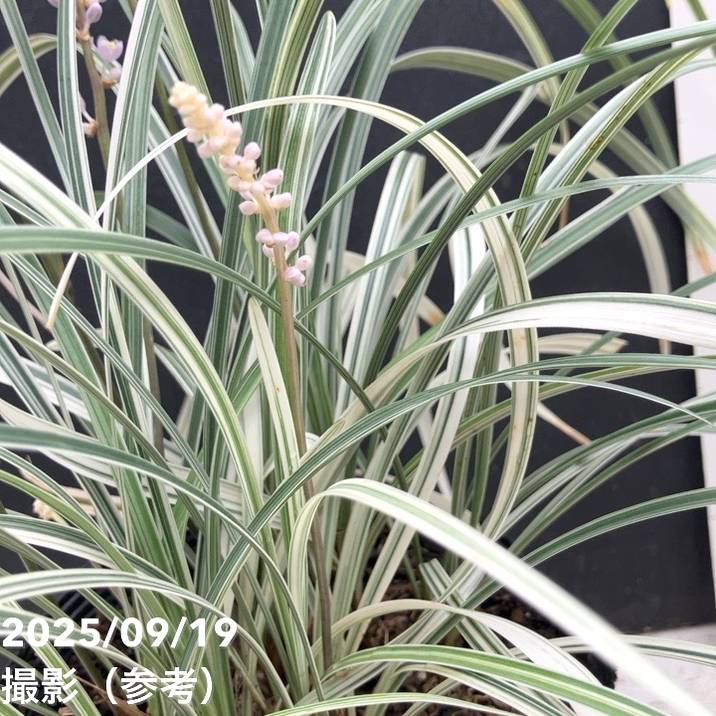 ヤブラン シルバードラゴンは、細長い葉に白い斑が入る美しいカラーリーフで、観葉植物としても人気があります。