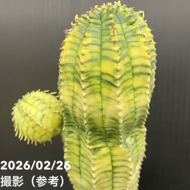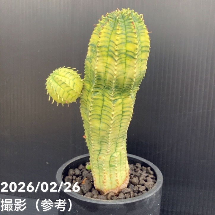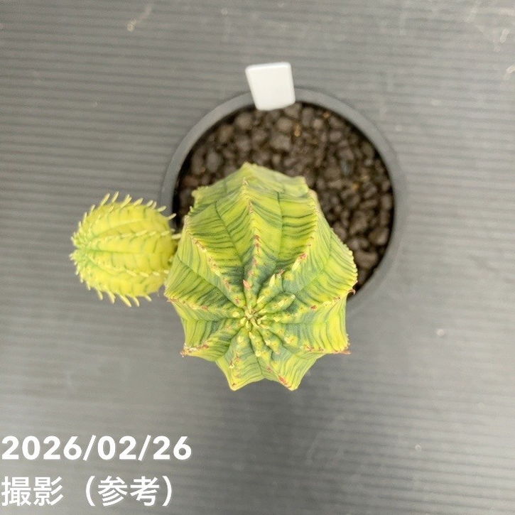 ユーフォルビア・オベサ梵天錦は、ユーフォルビア・オベサの斑入り変異種で、美しい黄緑色とクリーム色のマーブル模様が魅力的な多肉植物です。