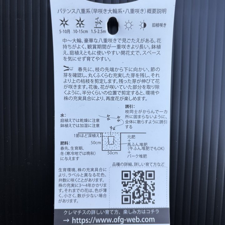 クレマチス パテンス八重系(早咲き大輪系)円空 4号|草花04-PA