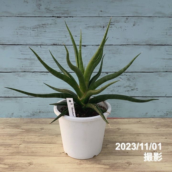 2022年にタイから輸入した珍しいサンセベリアです。葉を途中で斜めに曲げながらカッコよく伸びていきます。 -