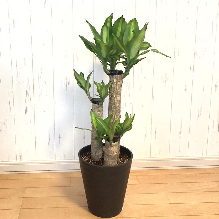 幸福の木 ドラセナ・マッサンゲアナ 7号 3本植え 受け皿付き|観葉01-D1