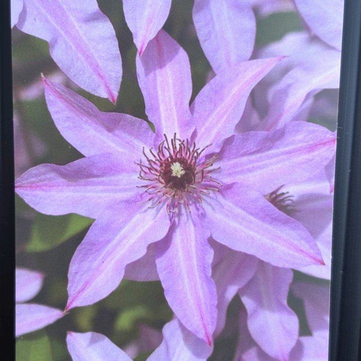 淡い藤色の花が幾重にも咲く幻想的なクレマチス。春から秋まで繰り返し花を楽しめます。