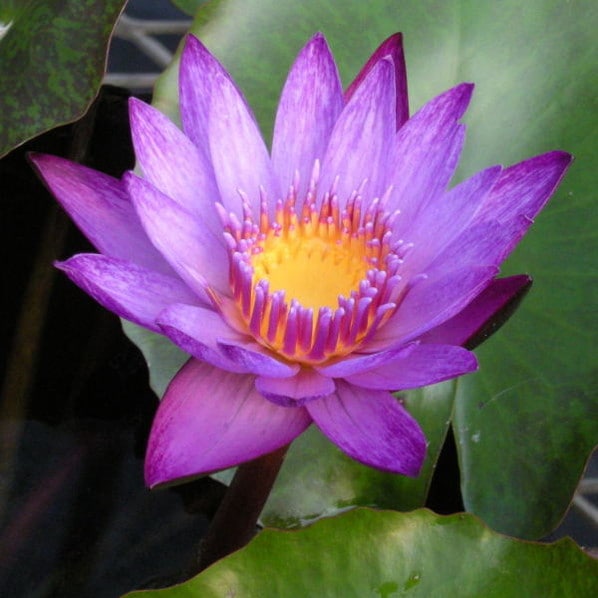 明るい藤紫色の花弁で、先端から中央にかけて濃い青紫がカスリ状に入る熱帯スイレンです。