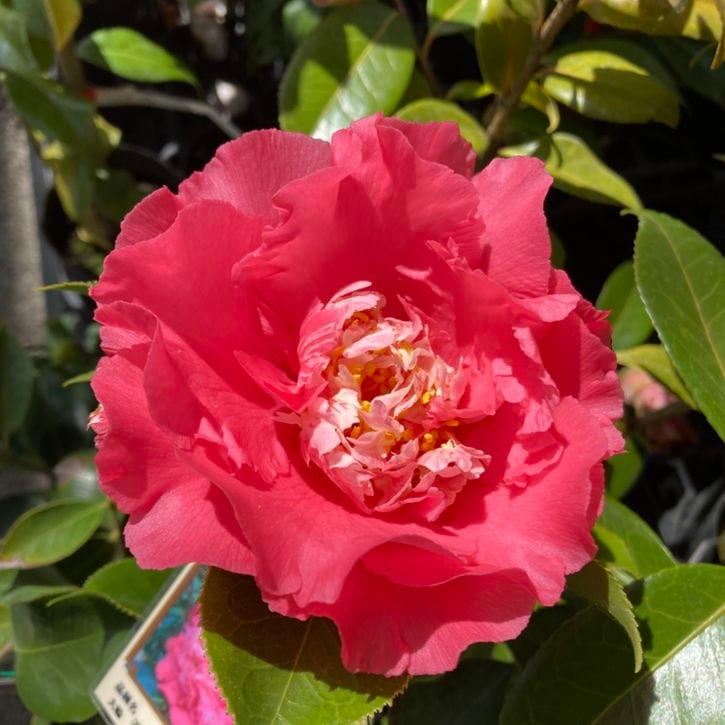 濃ピンクの大輪八重咲き。バラのような華やかさを持つ上品な洋種ツバキ。
