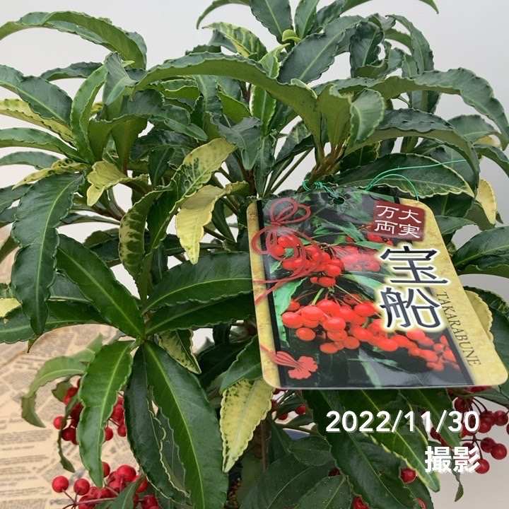 <実付き>斑入り万両マンリョウ 紅孔雀 5号 PVP|観葉10-TU