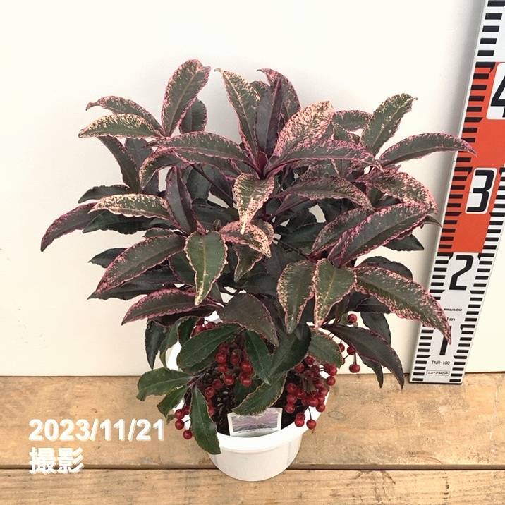 斑入り万両 マンリョウ 紅孔雀 4号 PVP|観葉04-PA