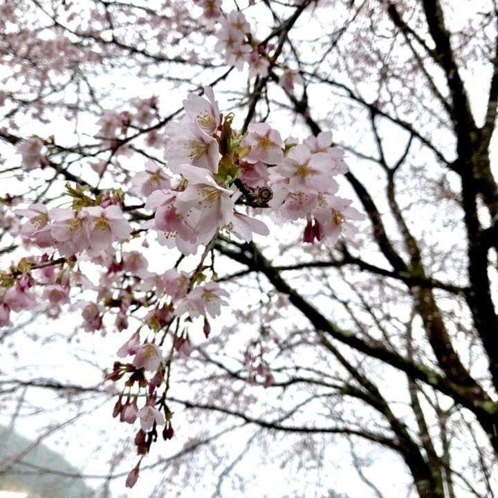 樹形は、枝が細くしなやかで枝垂れ桜ほどは垂れないものの、全体的に柔らかく広がり優しい雰囲気を持っています。