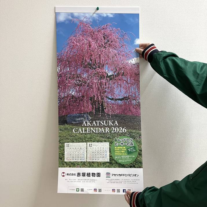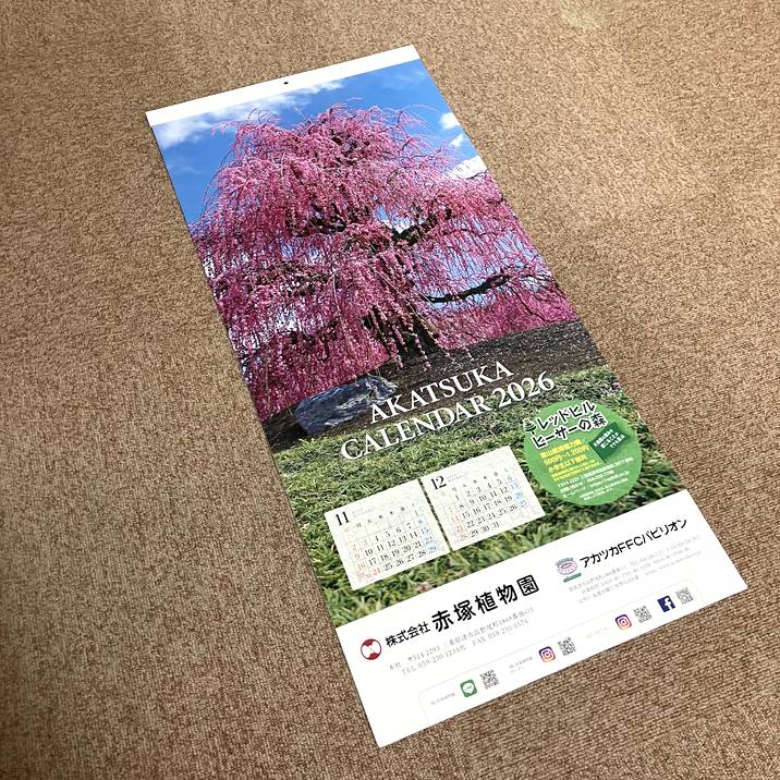 赤塚植物園がオリジナル製作する、美しい公園の風景がプリントされた2026年のカレンダーです。