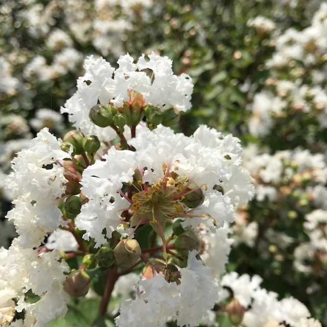 花嫁さんをイメージさせる純白花。ピンクのサルスベリが多く流通する中、白は夏でもさわやかな印象を与えます。