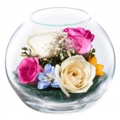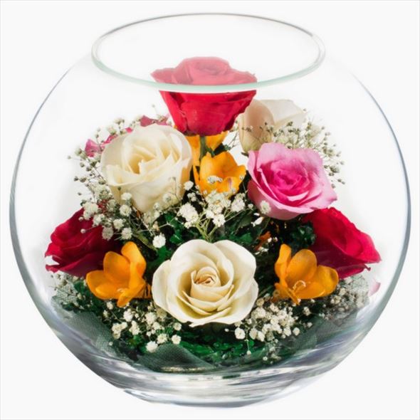 生花の最も美しい姿と鮮やかな色をそのままに残す独自の方法で加工した花たちが、透き通ったクリアガラスの中で息づいています。