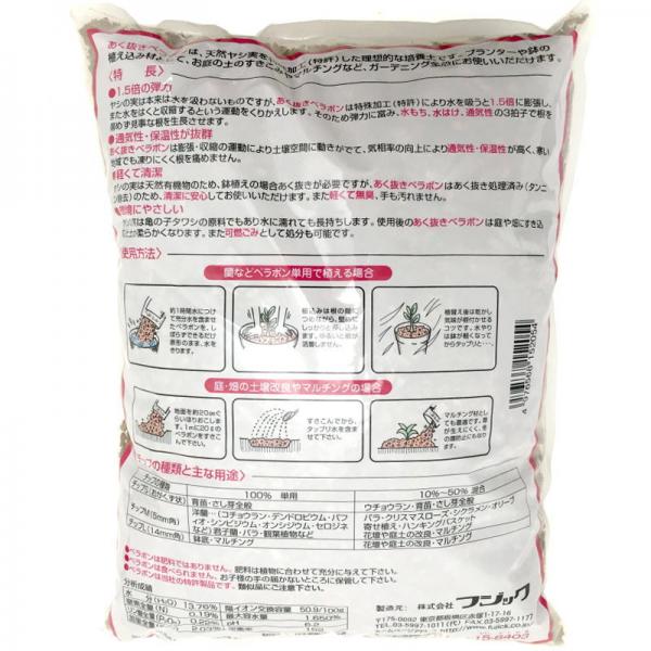 ・保湿性がバツグン:あく抜きベラボンは膨張、縮小の運動により土壌空間に動きがでて、空隙率の向上により保湿性が高く、温度管理の難しい植物でもよく育ちます。