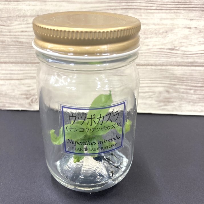 植物でありながら虫を捕獲する特性を持ち、その独創的なフォルムや妖艶な美しさでコアな人気の食虫植物を、コンパクトなガラス瓶で栽培したお洒落なインテリアプランツです。