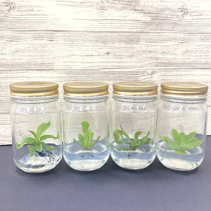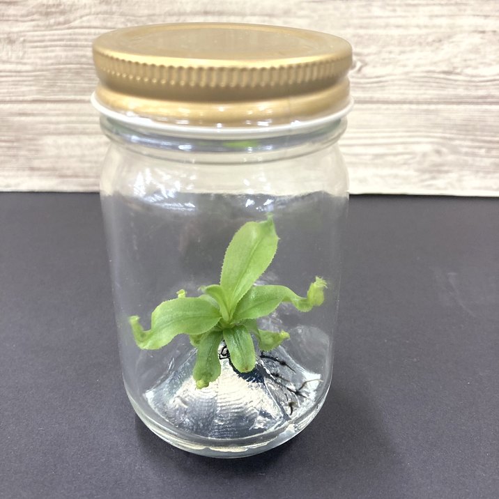 液体になったらビンのふたを開け、市販の園芸用の土か水ゴケに鉢替えして育ててください。