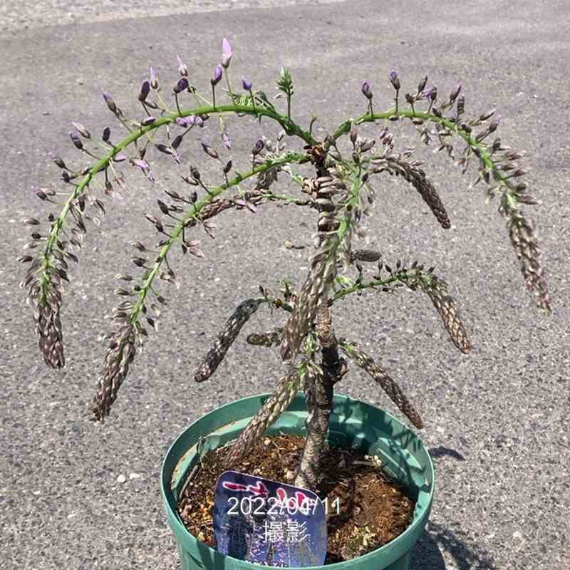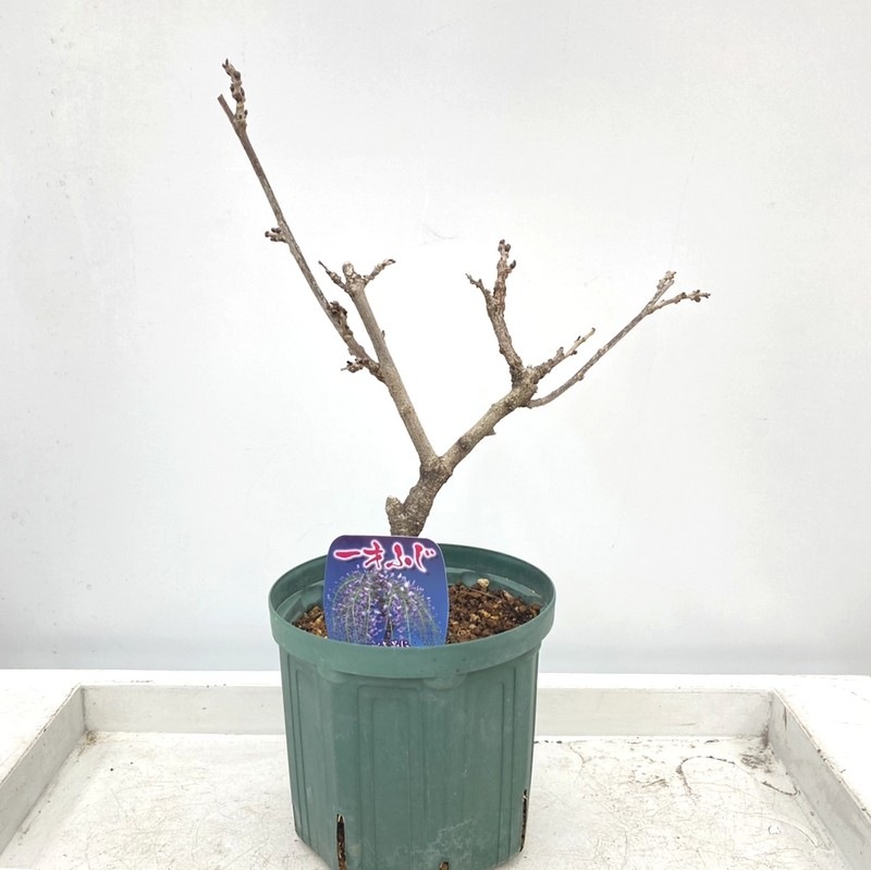 あえて棚に仕立てず鉢植えで中央に太い支柱を立てて枝垂れさせるような仕立て方をして楽しむと場所を取らず美しいフジをお楽しみいただけます。