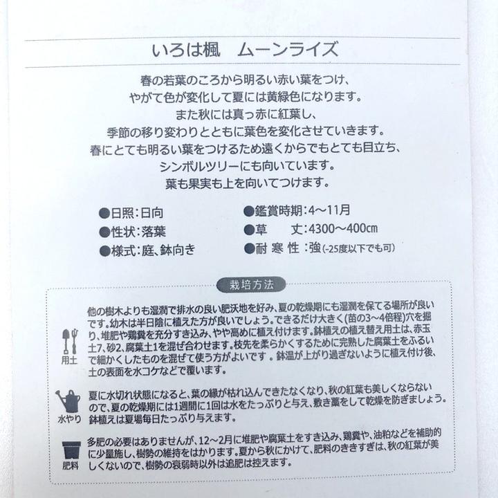 - 商品は基本的に①植物の種類、②鉢サイズ(号数)を規格としてお届けしております。仕入れ時期や仕入れ生産者の違いにより、 株姿、鉢の色、鉢の種類、ラベルの種類などが商品画像のイメージと変わることがございます。