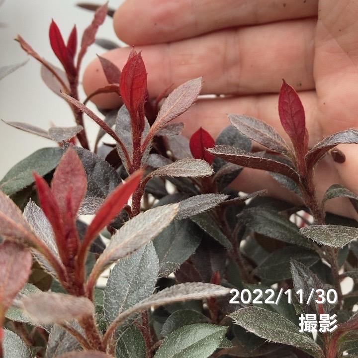深い赤黒の葉色で、カラーリーフプランツとしてもたいへん人気のある珍しいツツジです。