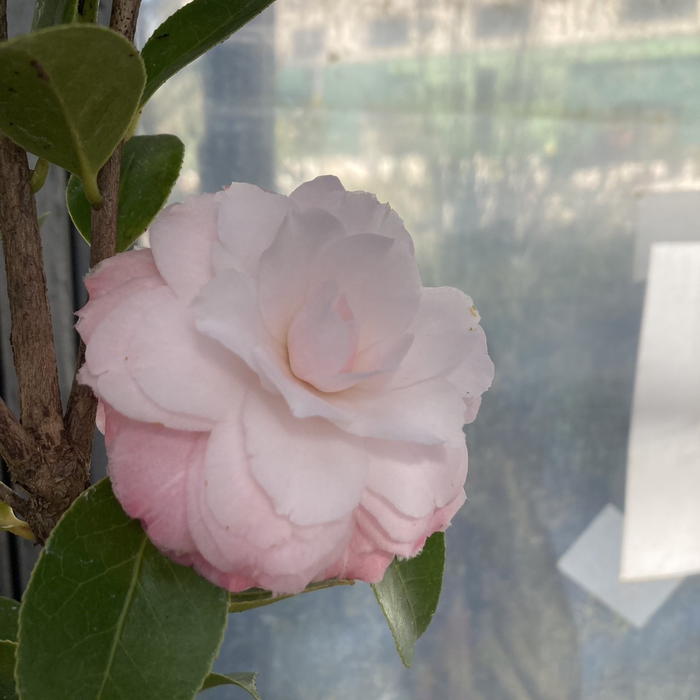 タミアは、純白に近い淡いピンクの花を咲かせる中輪八重咲きの上品なツバキです。