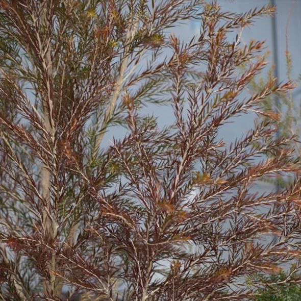 リバティーツリーとも呼ばれ、原産地のオーストラリアでは、小川のそばに生えてます。初夏に小さな白い花を咲かせます。秋~冬になると葉色がブロンズ色に紅葉を楽しめます。