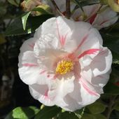光沢のある濃い緑の葉をもちます。花の少ない冬に美しい花を咲かせることから、茶花として愛され「茶花の女王」とも称されます。