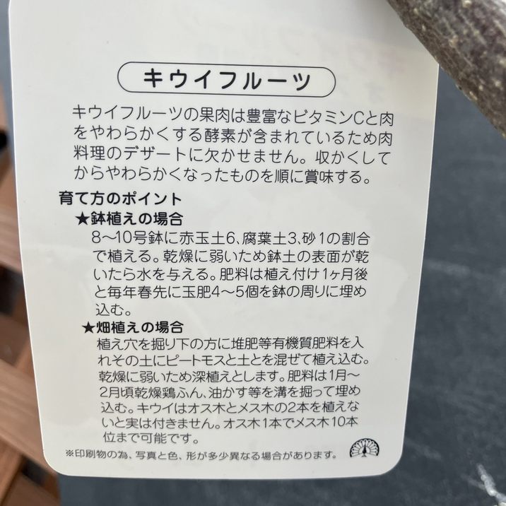※キウイはオス木とメス木の2本を植えないと実はつきません。オス木1本でメス木10本くらいまで受粉可能です。