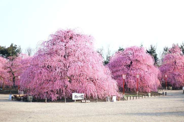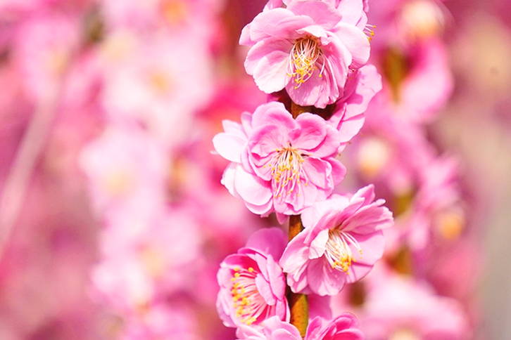 梅の花は昔から早春の花として多くの人に愛されてきましたが、最近はしだれ梅の華やかさが注目され特に人気が高まっています。しだれ梅は通常の梅と違い、すべての枝が柳のように優雅にしだれ、その枝にびっしりと美しい花をつけるため、大変に華やかです。
