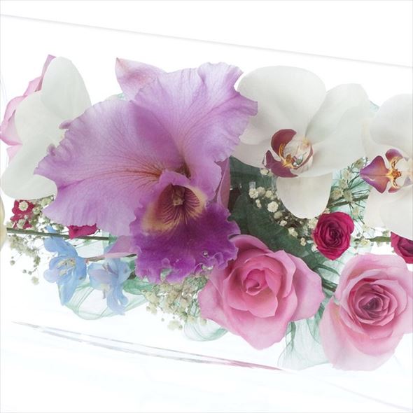 生花の最も美しい姿と鮮やかな色をそのままに残す独自の方法で加工した花たちが、透き通ったクリアガラスの中で息づいています。