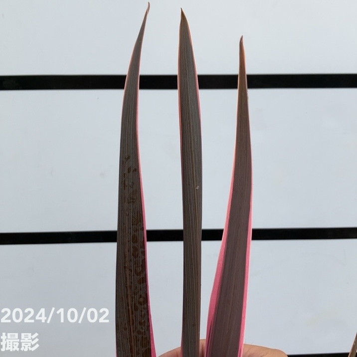 鮮やかなピンクとダークカラーのコントラストが目を惹く、葉色の美しい品種です。