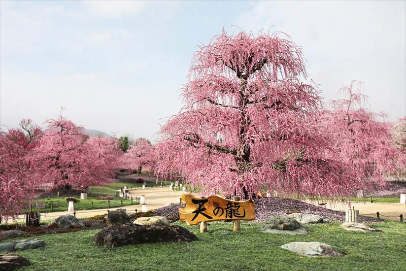 伝承されてきた技術により美しく仕立てられたしだれ梅は多くの花をつけ、訪れた多くのお客様からは「まさに桃源郷のようだ」など称賛の声をいただいています。