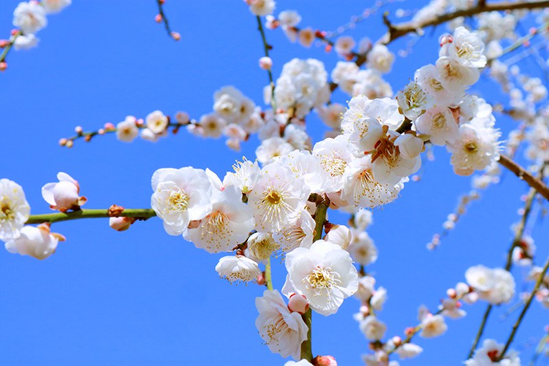 梅の花は昔から早春の花として多くの人に愛されてきましたが、最近はしだれ梅の華やかさが注目され特に人気が高まっています。しだれ梅は通常の梅と違い、すべての枝が柳のように優雅にしだれ、その枝にびっしりと美しい花をつけるため、大変に華やかです。