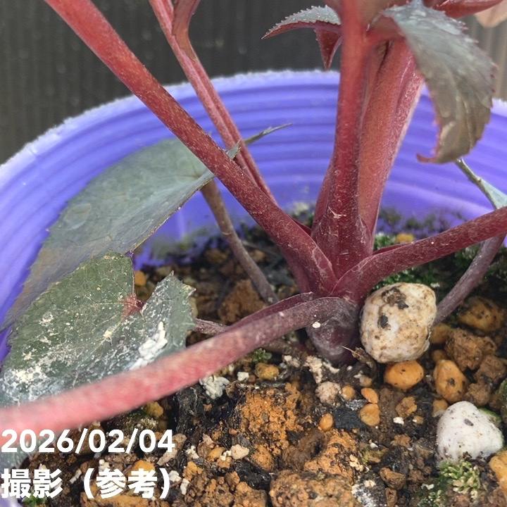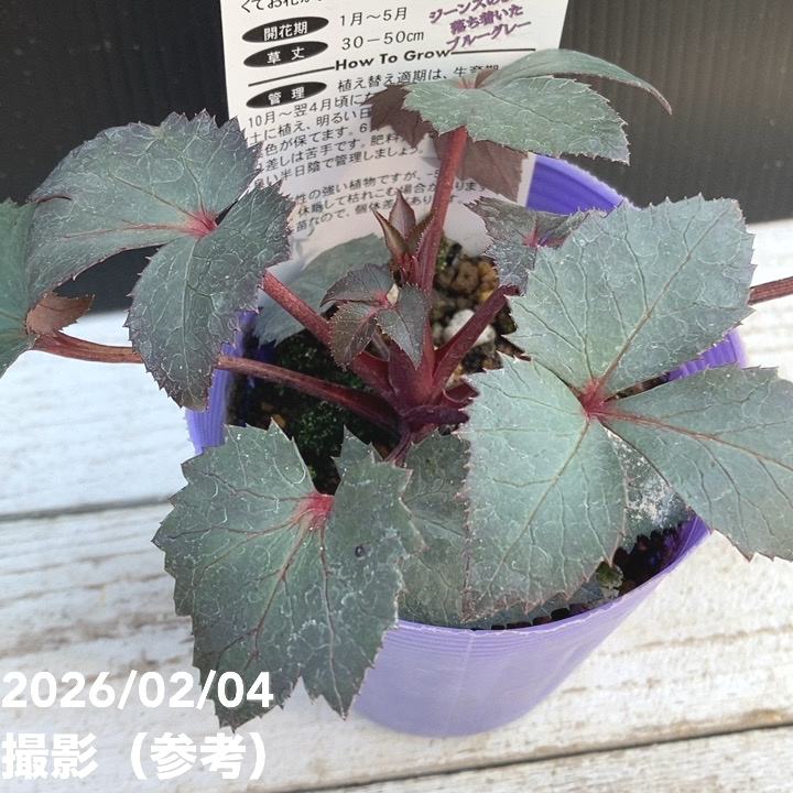 ブルーグレー系の葉色に赤軸、程よく刻みの入った葉型が素敵な品種です。