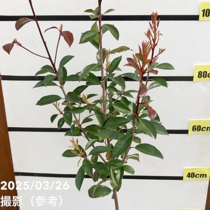 中国原産のオオカナメモチと日本原産のベニカナメモチとの種間雑種の一群(Photinia x fraseri)から、当社が、選抜開発したものです。