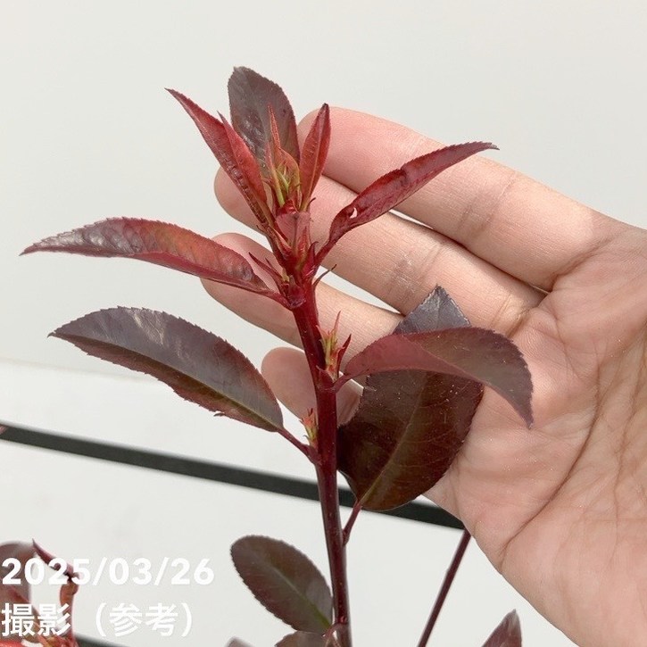 新芽の色の特に鮮やかで、葉型は日本在来種に近いサイズで形が整い、樹形もコンパクトになるものというコンセプトに海外から持ち込んだ大量の株の中から再選抜致しました。