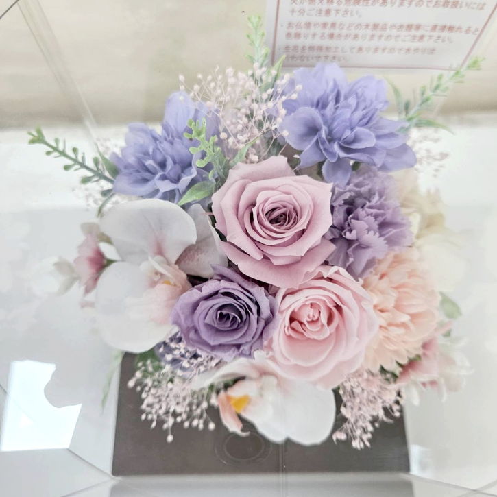 お悔やみ、お供えには水やり不要で枯れないプリザーブドフラワーがおすすめです。