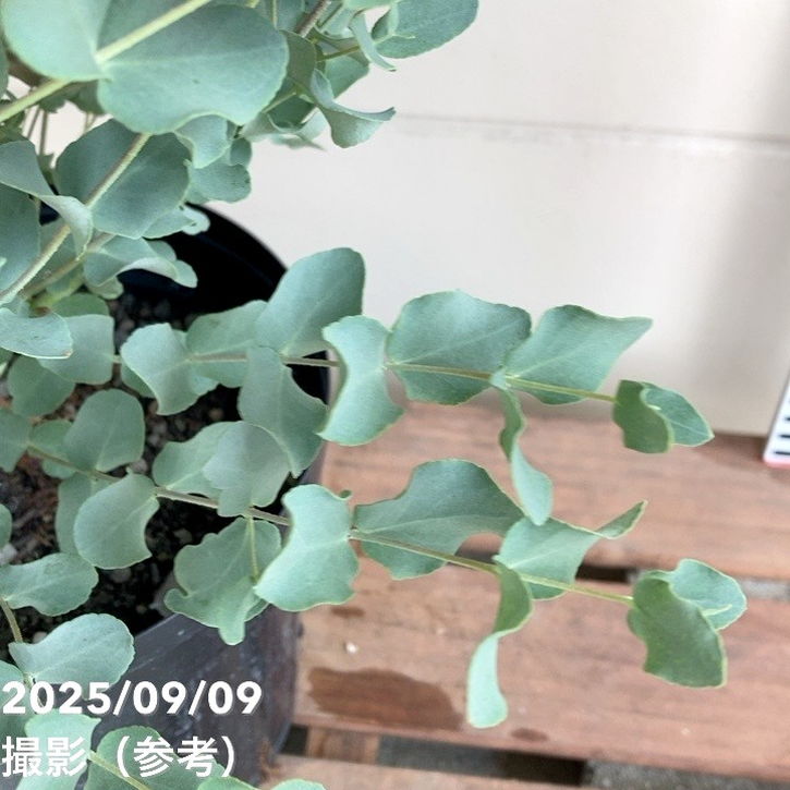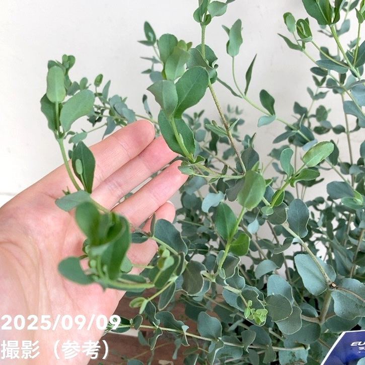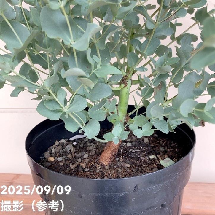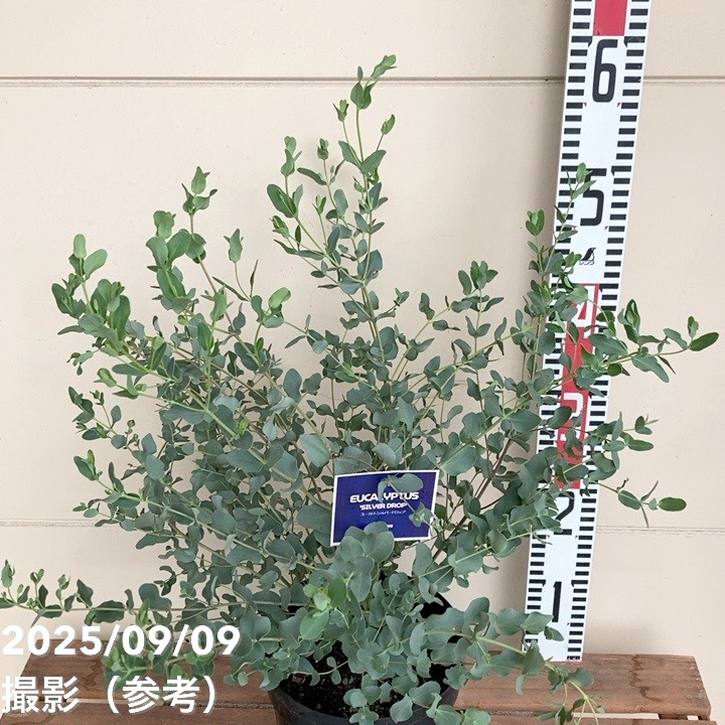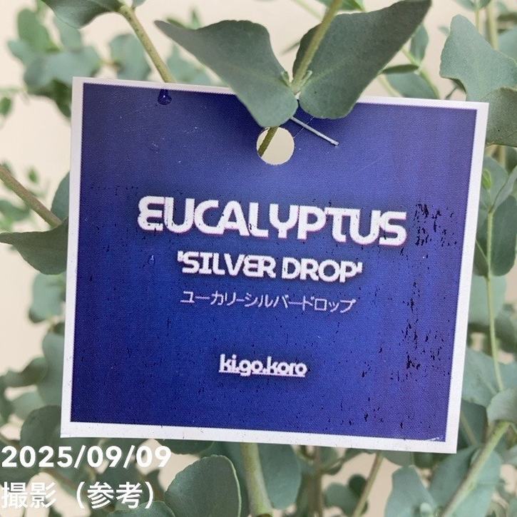 ユーカリ シルバードロップは、銀白色を帯びた丸い葉が特徴の美しい常緑低木です。