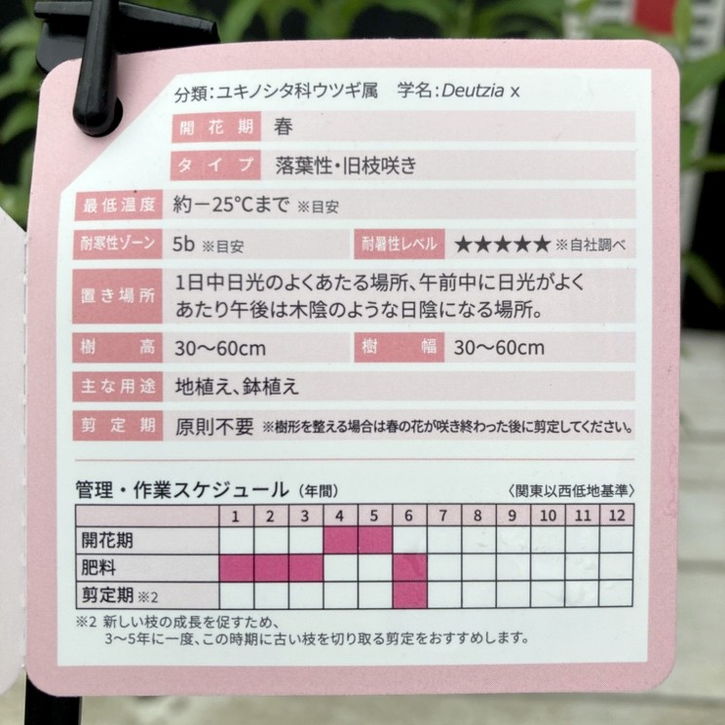 ユキチェリーブロッサムはヒメウツギの交配品種で、花付きが良く直射日光にも強いため、春の長い期間花が楽しめます。