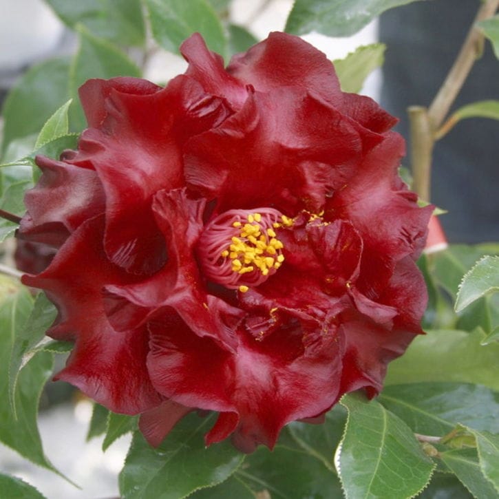 椿 ツバキ ブラックマジックは、黒紅色に近い非常に濃い花色が魅力の洋種ツバキです。
