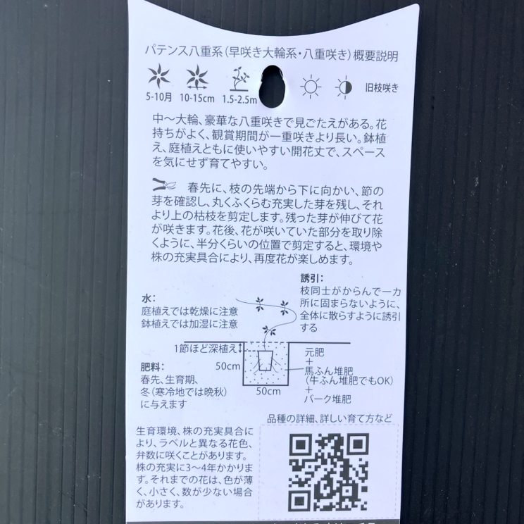 クレマチス パテンス八重系(早咲き大輪系)原種 紅おこし 4号|草花04-PA