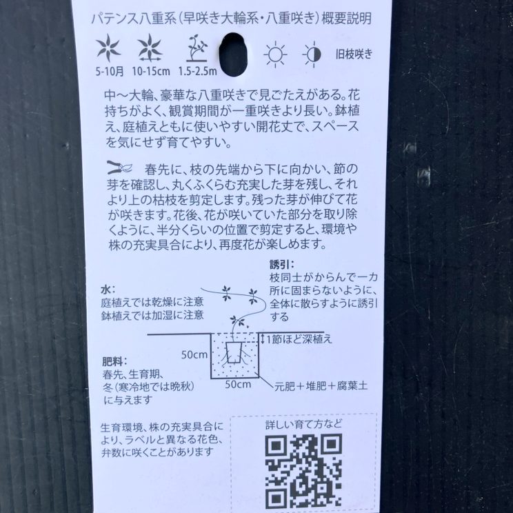 クレマチス パテンス八重系(早咲き大輪系)庭のよろこび 4号|草花04-PA