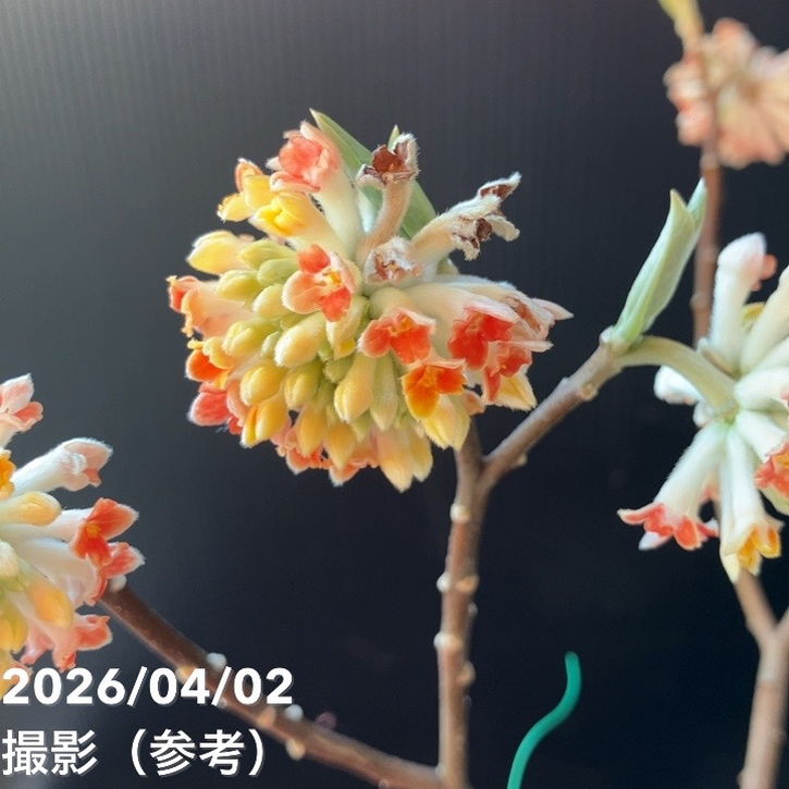 ミツマタ 赤花は、枝先に手まり状の個性的な花を咲かせる落葉低木で、外側が赤く内側がクリーム色の美しい花色が特徴です。