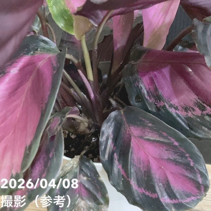 カラテア パープルローズは、ピンクからローズ色の美しい葉模様が魅力の観葉植物です。